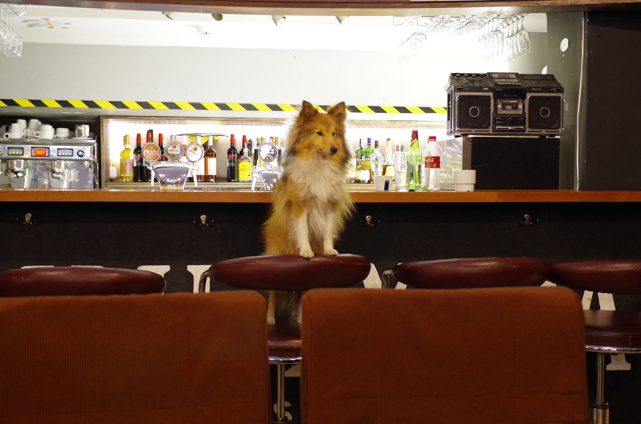 Ahogy jobban belegondolok, mégis tele van extrákkal a hely, persze lehet, hogy csak nekünk; első számú extra, hogy közel van, mintegy 5 perc sétányira, második a fent említett búzasör, de az uborkás limonádé szintén elég nyami, aztán még nekem marhára tetszenek az alapkaják – párfajta hamburger, tészta, saláta, wrap – is, de a hetente változó extra menü mindig rejt valami ínyencséget. A hely hangulata is nagyon bejön, egyszerre tágas és zegzugos, nagyon ’80-as évekbeli (főleg a kiállított walkmaneknek, szalagos magnóknak, archaikus kvarcjátékoknak köszönhetően) és modern. Biztos sokat hozzátesz a barátságos enteriőrhöz, hogy nem csak a kutyáinkat köszöntik név szerint, hanem már minket is, bár érezhetően nekik jobban örülnek azért, pedig elég pofátlanban adja elő a két jószág, Ardi például ott unt rá annyira jogai korlátozására, hogy a pórázt elrágva indult felfedezőútra a konyha felé, Dorka pedig többnyire jókutyaként viselkedik ugyan, de azért néha bekirándul a bárpult mögé megérdeklődni, nincs-e maradék alma. Vagy valami.