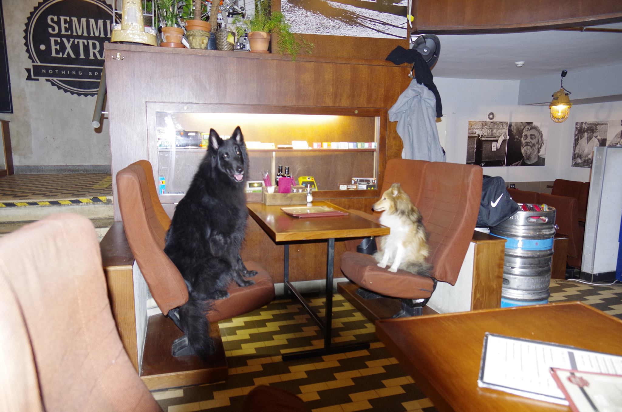 Merthogy persze kutyabarát a hely, annyira, hogy szerintem hamarabb küldenék el a kutyák ellen berzenkedő vendéget, mint a kutyát. Szóval Dorkáék is törzsvendégnek számítanak, bár ők csak vizet és néha almadarabkákat fogyasztanak, nem jófajta búzasört, mint mi.