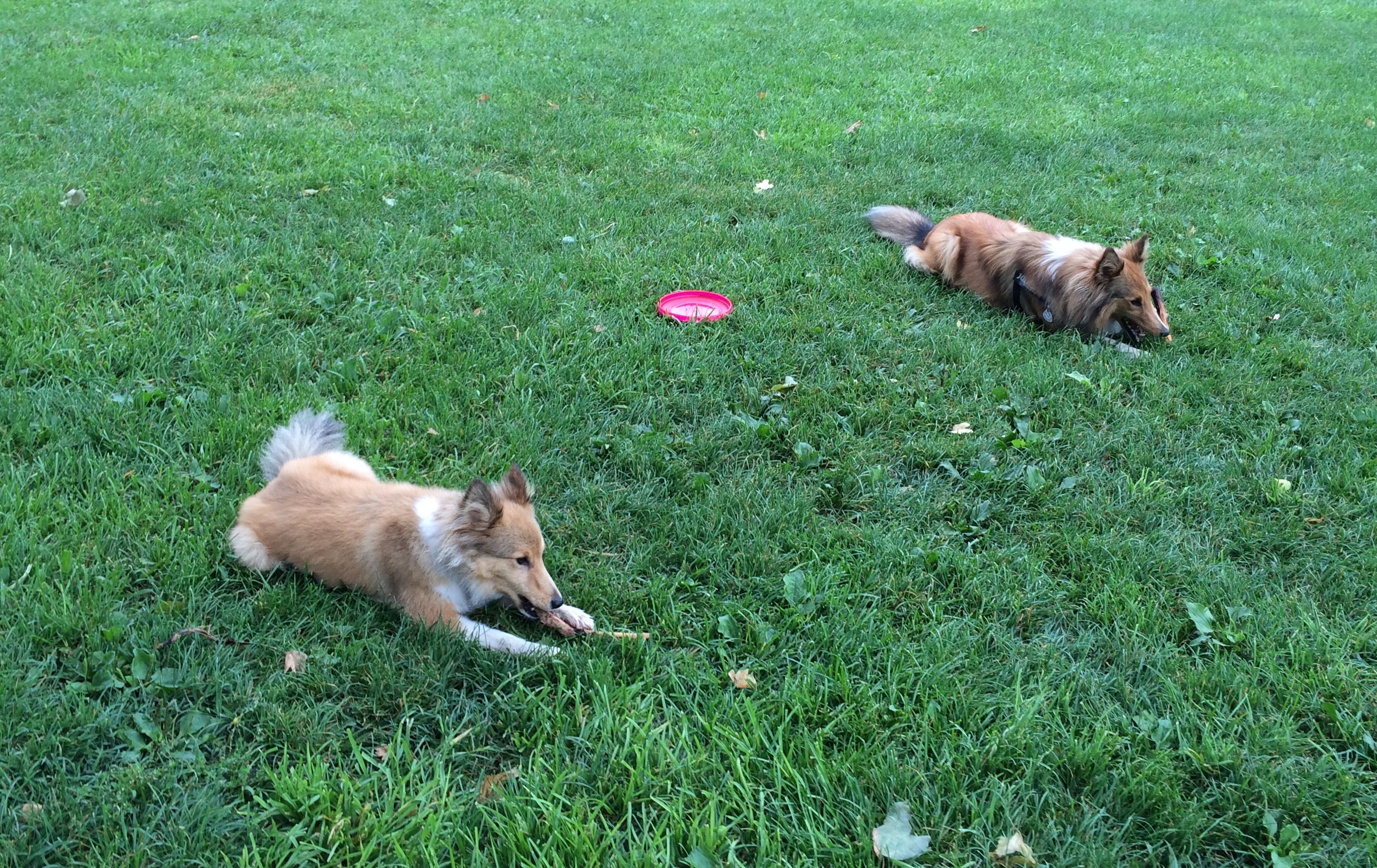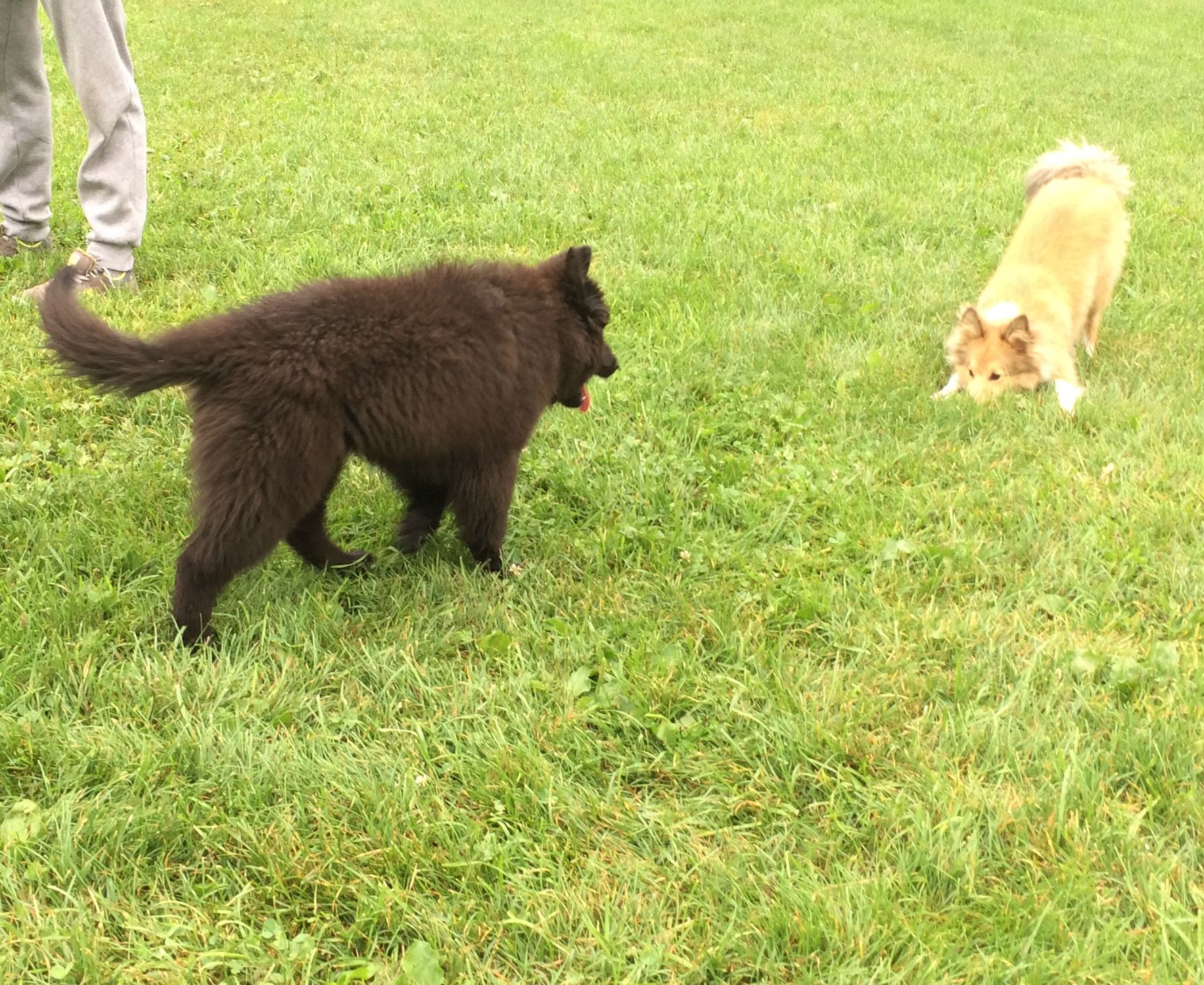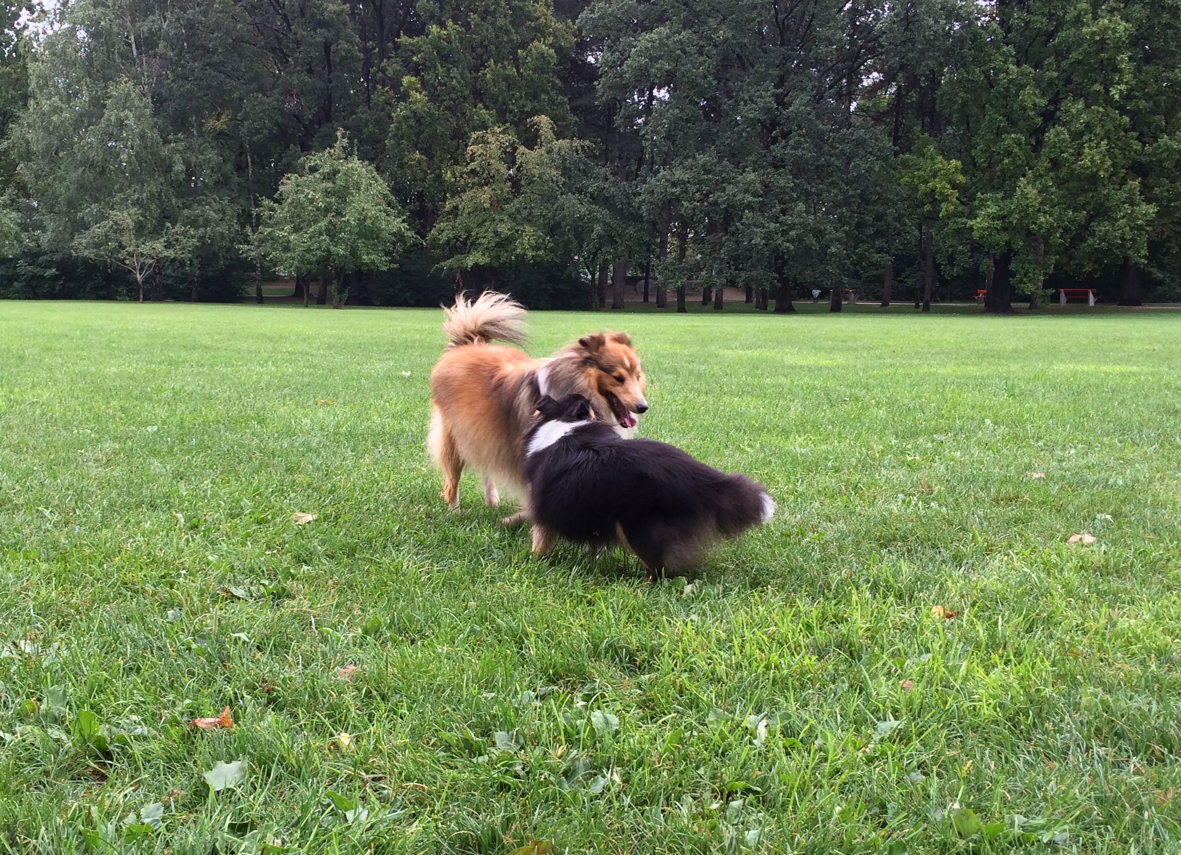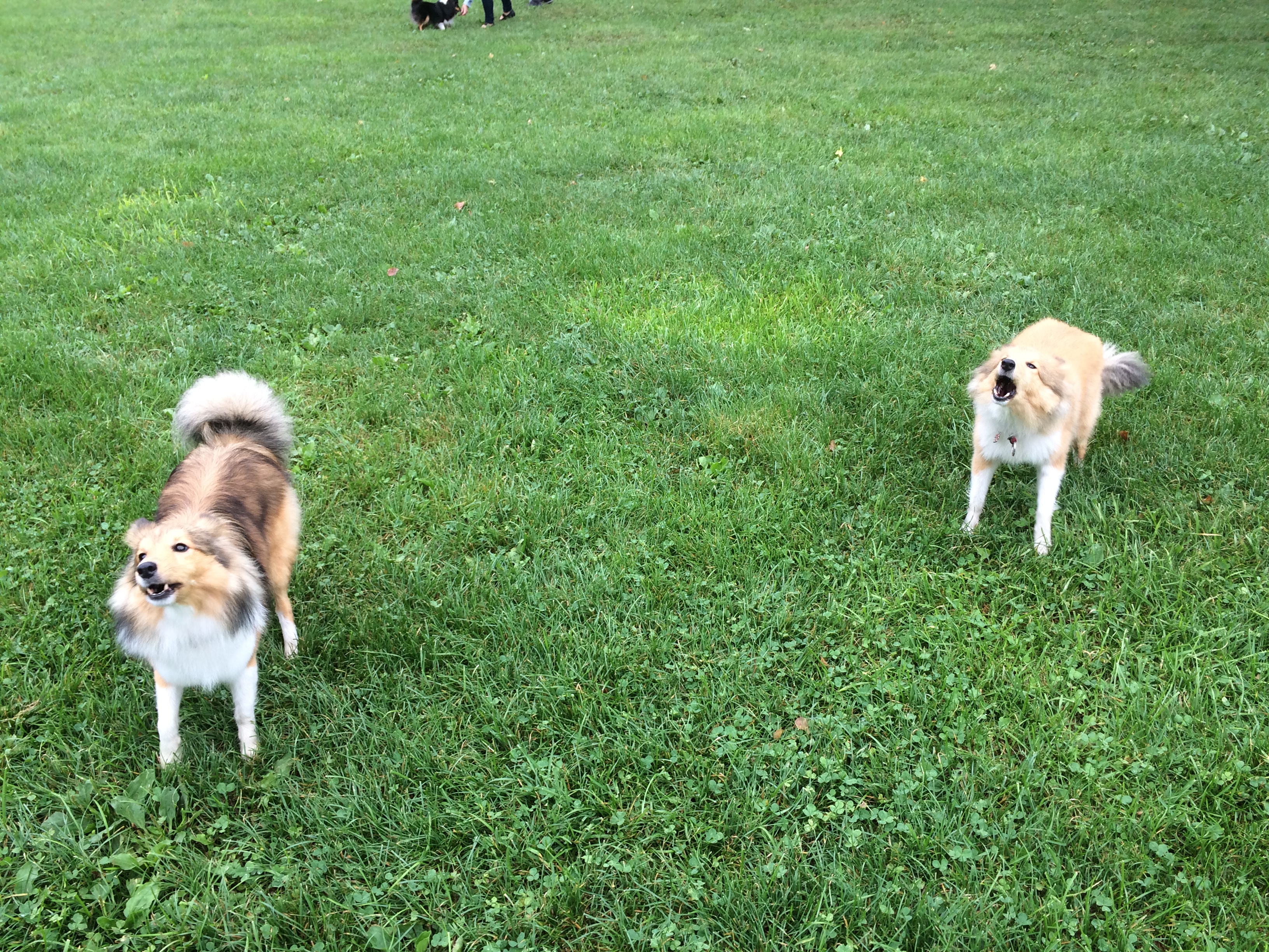Az a tök jó a sheltie-ben mint fajtában, hogy különösebb aggódás nélkül össze lehet ereszteni vadidegen egyedeit, eszükbe nem jut nekiállni balhézni vagy verekedni, hanem jó eséllyel játszanak egy hatalmasat. Amelyik visszahúzódóbb, félénkebb természet, az inkább elfut, de nem támad vissza, és a többiek sem abuzálják. Nem igazán tudom belőni, hogy a fajtán múlik-e, vagy valami szerencsés véletlen folytán minden sheltie-gazdi viszonylag normális kutyásnak mondható, de agresszor példánnyal tényleg nem találkoztam, nem is hallottam ilyenről.