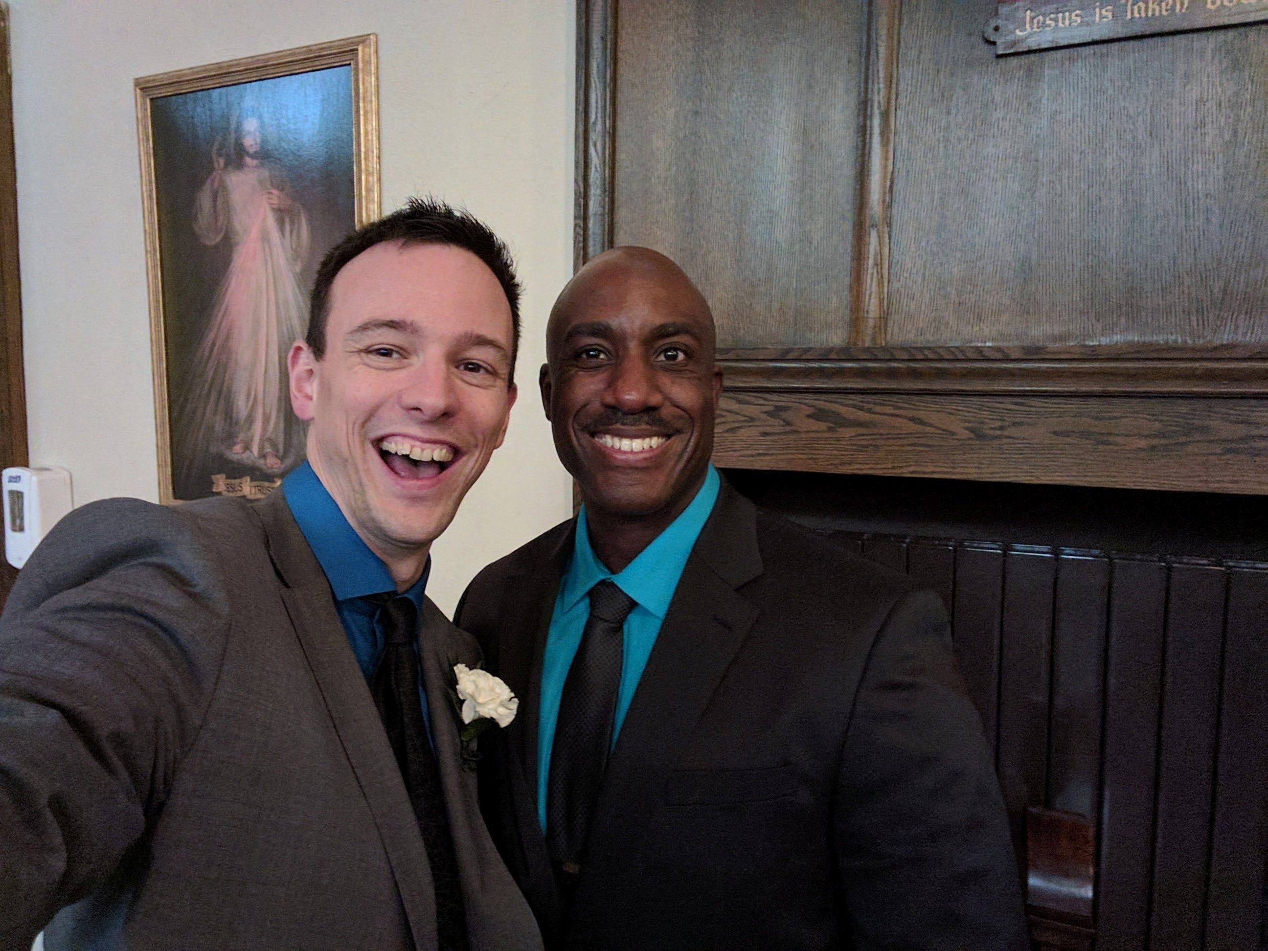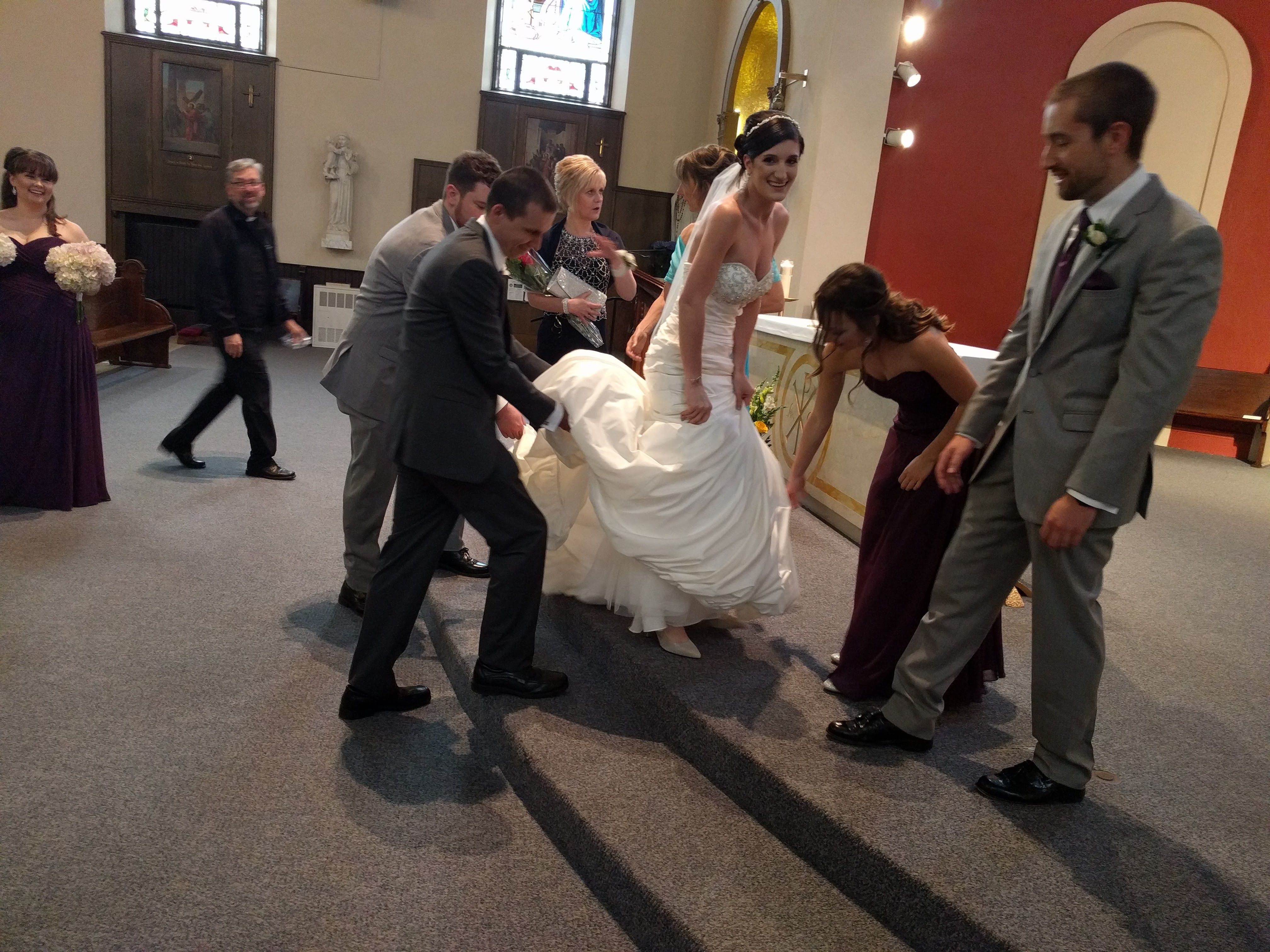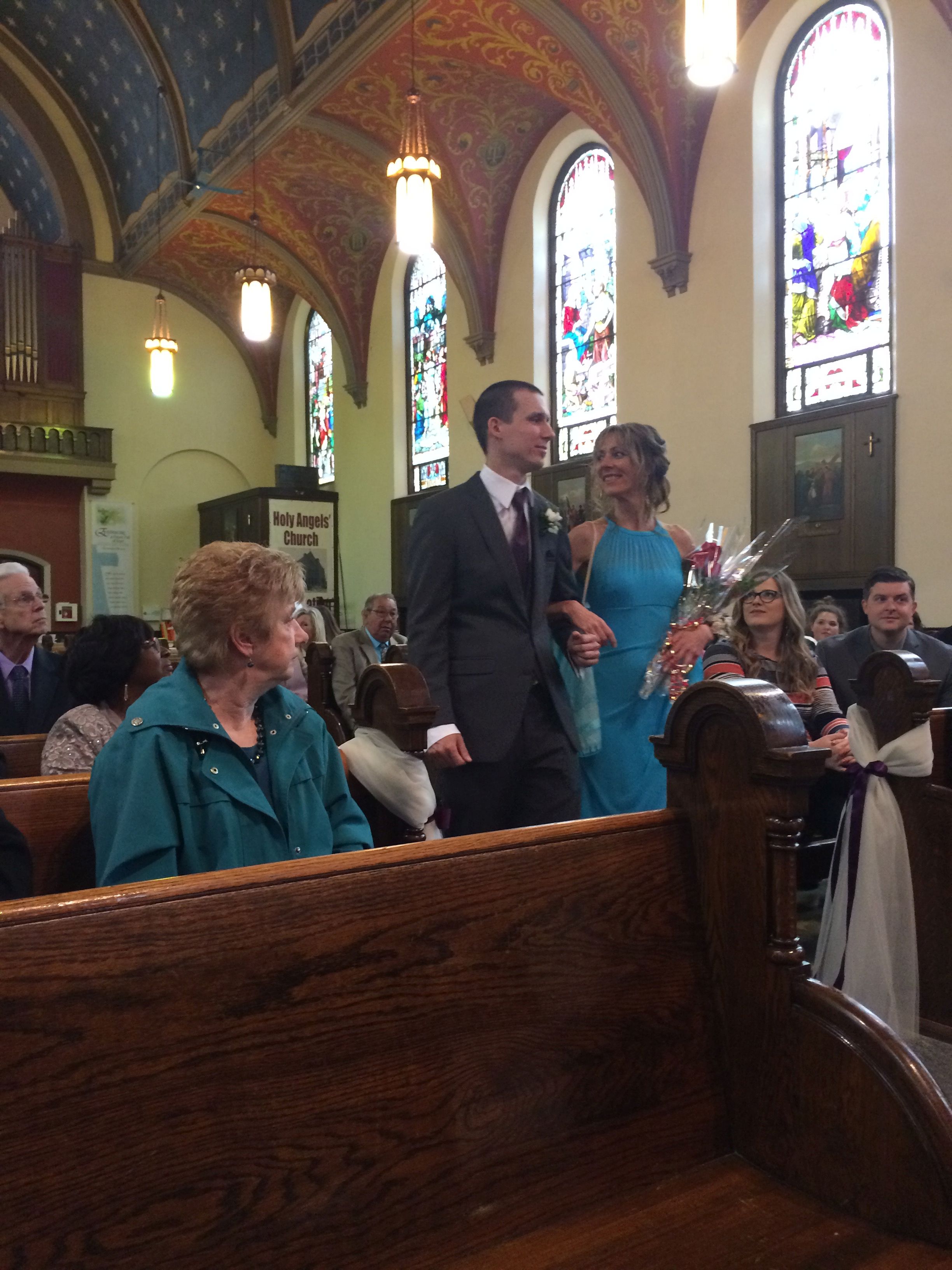 Maga a szertartás egyszerre volt megható és vicces; bár templomban tartották, mégsem volt olyan hangulata, hogy mindjárt felvágom az ereim a depresszív dumától és/vagy az unalomtól (komolyan, azok a katolikus esküvők, amiken eddig voltam, semmiben nem különböztek egy gyászszertartástól), a pap hol sziporkázóan szellemeseket mondott némileg stand-up stílusban, hol meg elkomolyodott, de akkor is áthatotta a mondandóját a szeretet. Látszott, hogy ismeri a srácokat, törődik velük, és tényleg szívén viseli a sorsukat, és a beszéd végén, mintegy összefoglalásként azzal bocsátotta el őket: a legfontosabb, hogy nagyon jól érezzétek magatokat és sokat nevessetek! Imádtam az ürgét.